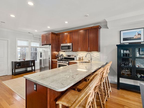 Enjoy the best of South Boston with this spectacular 3-bed/3-bath penthouse duplex in an unbeatable location! Spanning 1,501 sqft across 2 levels, this spacious home offers a perfect blend of comfort, style, & functionality. The open-concept layout is ideal for modern living, and storage is plentiful, with thoughtfully designed closets + additional storage areas throughout the home. Each bedroom is generously sized, while the meticulously renovated primary bathroom with gorgeous marble tile adds a luxurious touch to the primary suite. A beautifully designed roof deck with Southern exposure and gas fire pit is perfect for entertaining / relaxing. Central AC, hardwood floors, & deeded basement storage round out this property! Enjoy local favorites Petula's, Annie's, Sidewalk Cafe, The Paramount, Playwright, plus Starbucks, Stop & Shop, Walgreens, MyStryde/workout classes, shops, Medal of Honor Park, M St beach, Castle Island, Curley Center, and public transportation (buses & BlueBikes)!