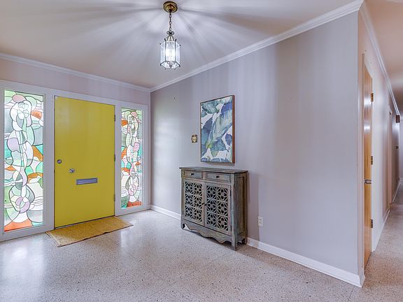 Welcome to this beautifully maintained home that blends charm and functionality in every space. As you enter through elegant front door framed with stunning stained glass, you're greeted by a spacious foyer leading into a warm and inviting living room with a cozy fireplace and newly updated flooring. Just off the living room, double doors open into a generous formal dining room—perfect for hosting family gatherings or dinner parties. The large, open kitchen is a standout feature, offering ample cabinet storage, abundant counter space, and a striking tile backsplash. A picture window in the kitchen provides a lovely view of the fenced backyard, and just off the kitchen is a convenient half bath and a laundry room with access to the garage. Beyond the kitchen, a versatile bonus space can serve as a second dining area, home office, or den, complete with sliding glass doors that lead out to a covered patio—ideal for relaxing or entertaining outdoors. Down the main hallway, you'll find a full bathroom, three spacious bedrooms with large closets, and a primary suite that boasts a massive walk-in closet and a tiled en suite bathroom. All bedrooms feature gleaming hardwood floors. This home has been well cared for and is ready for its next chapter. Don’t miss the opportunity to make it yours!