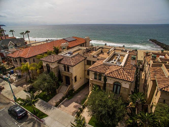 Exquisite ocean front townhome with breathtaking panoramic views. Location, location, location! This home features a great room that truly owns its name with huge panoramic ocean views, tasteful fireplace, high end tile floors, open plan layout, and an amazing balcony. Gourmet kitchen with top of the line appliances and a beautiful oversized island. Primary suit boasts ocean views as well, along with a fireplace and huge walk in closet. Immaculate primary bath features an oversized tub and stand-alone shower. Three-stop elevator will take you to all floors with ease. Bonus room downstairs can be used for an additional guest bedroom, wine cellar or storage. Roof top deck access from balcony off the great room. Two-car garage with direct access. Only minutes from great local schools, popular shopping and dining, and the historic Redondo Beach pier. Steps to the sand and beach access. Enjoy your morning with coffee on the beach and spend the evening watching the sunset over the Pacific. "To Live, Live By the Sea." Can also be leased monthly or month to month at rate of $17,500 per month fully furnished this price includes all utilities.