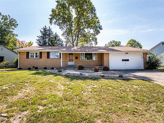 Welcome to this charming Mid-Century 3-bedroom, 2-full-bath brick ranch in the popular Applewood Acres neighborhood of Boardman. Enjoy the curb appeal of the low-maintenance river rock landscaping and perennials leading up to the covered front porch. Inside, you'll find almost 1500 square feet of living space with hardwood floors and plaster walls freshly painted throughout with neutral colors. The spacious living room includes a large picture window that lets in plenty of natural light. The kitchen features updated cabinets and flows into the dining area with built-in corner cabinet for extra storage. The large family room features a cozy gas fireplace and sliding glass doors leading to the back patio, making it easy to enjoy outdoor activities in the sizeable fully fenced backyard. The main level has three bedrooms with ample closet space and a full bath with plenty of storage. You'll find a versatile first floor laundry space currently situated in a bedroom, which can easily be converted back to its original use if desired. Additionally, a second laundry area is conveniently located in the basement along with another full bathroom, kitchenette, tons of storage and a finished space that would make a great rec room, office or gym. The two-car garage has plenty of room for vehicles, lawn tools and the freezer and fridge that stay with the property! Updates include a newer roof, smart thermostat, 200 amp electric panel and a new garbage disposal in 2023. With its classic appeal and prime location close to Applewood Tennis and Swim Club, schools and shopping, this Boardman property is "A nice place to call home!"