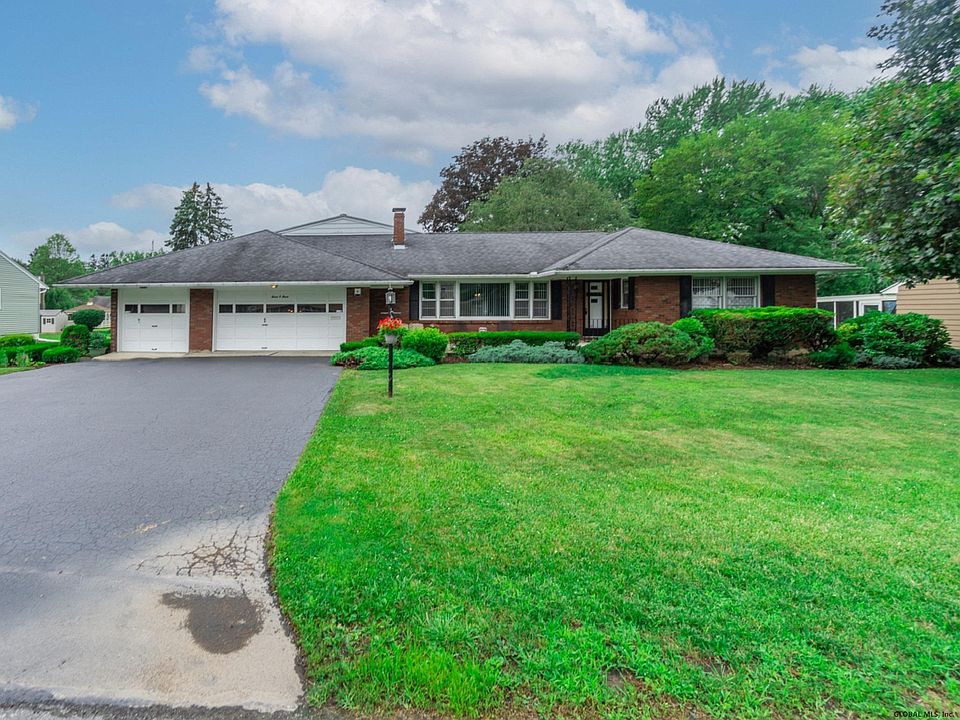 One of the coolest houses around! This brick ranch offers the wonderful & expected attributes of one level living & then surprises you with some unique bonus features like an 1800 sq foot sunroom that houses a 16x32 inground pool (new pump), finished basement space, an attached 2-car garage AND tandem garage space big enough for multiple cars or storage to keep that primary garage available for vehicles. Electrical service has been upgraded. Have fun leaning into the retro energy of this home or bring your vision to update it to your preference. Fantastic living space & location! Taxes shown w/ $599 STAR exemption.