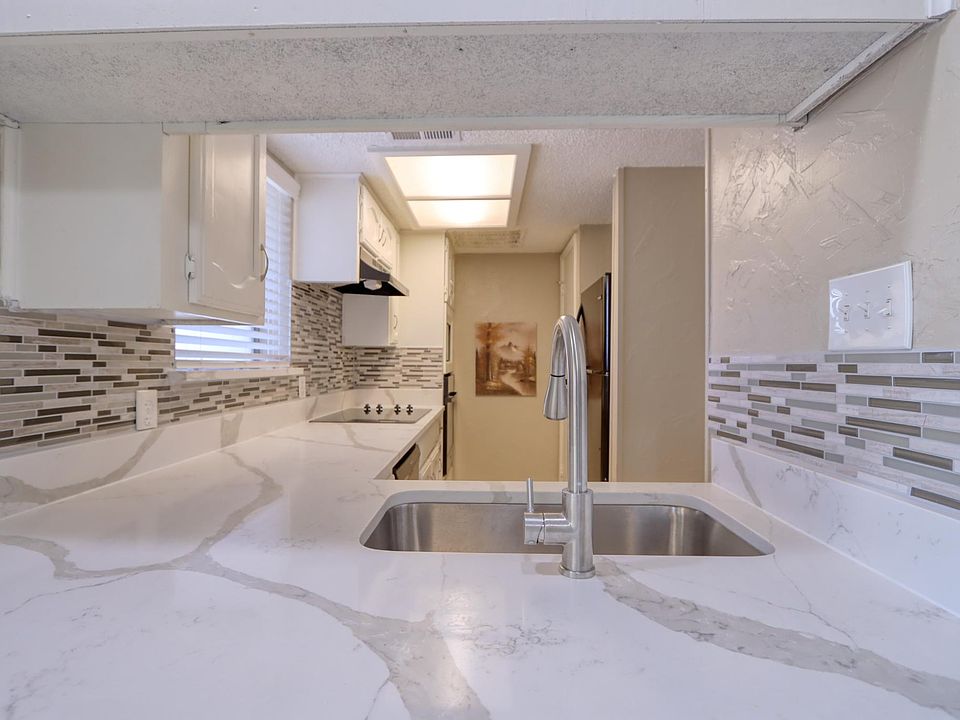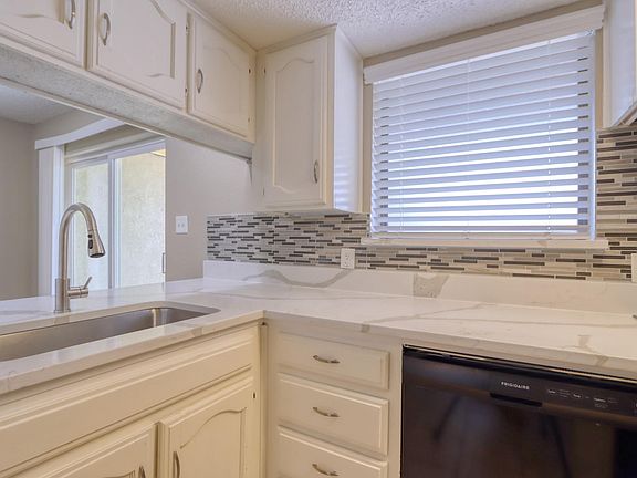 This 2 bedroom 2.5 bathroom home was transformed through a complete renovation in 2023! The kitchen has been renovated with all NEW quartz kitchen countertops, designer mosaic backsplash, large stainless kitchen sink, kitchen faucet, ceramic tile floors, cabinets painted white, and cabinet handles. The kitchen also has a full set of appliances, including a refrigerator/freezer, dishwasher, stove, oven, range hood, microwave, and garbage disposal. The bathrooms have been renovated with all NEW quartz countertops, fixtures, faucets, ceramic tile floors, toilets, bathtubs and tile surround, and rain shower heads. The entire home has all new luxury wood laminate flooring, ceiling fans light fixtures, water heater, doorknobs, window screens, and 2" faux wood window blinds. Freshly painted interior/exterior. Tons of storage space provided by the entry coat closet, kitchen pantry closet, bathroom linen closets, large bedroom walk-in closets, and the laundry room with full hook-ups. The master bedroom has a large balcony that was freshly stained. Enjoy weekend BBQs on your private backyard patio, enclosed by a brand new fence that was freshly stained. The roof was just completely redone with Tropi-Cool 887 Silicone White Roof Coating, which will reflect sunlight, help your home stay cool, lower your utility bills, and prevent future roof leaks. End-unit two story town home, with only one shared wall. Lawn mowing paid for by landlord.