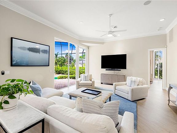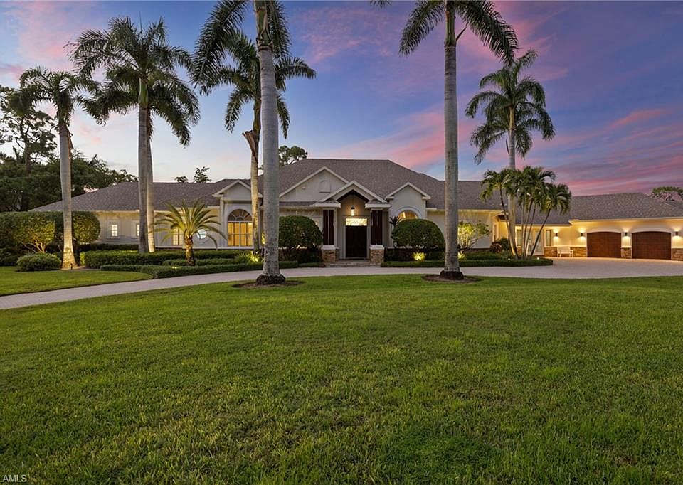 Completely reimagined by BCB Homes, this exceptional 1.3-acre corner property delivers the true essence of luxury living in Pine Ridge. Perfectly oriented to capture sweeping western lake views and spectacular sunsets, the home blends classic architecture with fresh, modern refinement.Inside, the craftsmanship is undeniable—two fireplaces, wide-plank engineered hardwood, and thoughtfully placed marble and tile accents set a warm, elevated tone. Lighted art niches, custom built-ins, and soaring volume ceilings give every room a sense of presence and purpose. Additional features include a temperature-controlled wine cellar, seamless curved glass walls, and a gourmet kitchen finished with rich granite surfaces. The layout was designed for comfort and versatility, offering an exercise room plus a private loft suite with its own sitting area for a quiet escape. Outdoors, the property shines just as brightly. A resort-style pool and spa overlook the water, while the circular driveway and oversized 3.5-car garage ensure both convenience and impressive curb appeal. Lush, manicured landscaping frames the entire estate, creating a private, serene setting. A rare offering where craftsmanship, comfort, and an extraordinary lakefront location come together in perfect balance.