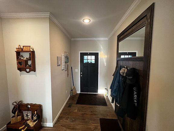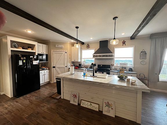 This beautiful 3 bedroom 2 bath home is just what you've been lookin for. This 32x60 2020 Clayton Norris offers approx 1920 sqft, a beautiful and spacious open floorplan that features beautiful laminate flooring throughout, exposed beams, crown molding, and walk in closets. Soon as you walk into the beautiful foyer your welcomed with 9 ft ceilings and tons of space which is great for dinners/birthday parties or entertaining family and friends On one end of the home you access the master bedroom suite that offers a very spacious closets, a large bathroom that has a gorgeous and spacious walking shower and soaking tub. When you walk into the kitchen you will notice all of the countertop space as well as the beautiful cabinetry, big island with sink and a huge corner pantry. beautiful exposed beams, and a very elegant fireplace. down the hall you will find 2 very spacious bedrooms as well as the second full bath. This home offers everything on one level as well as the laundry room. Outside we have beautiful country views, and a 12x16 shed. Schedule your showing today.