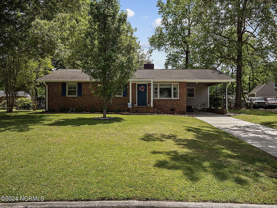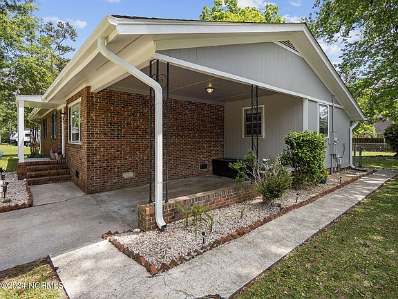 Looking for ranch style living in Jacksonville with no carpet or HOA? Here's your chance! This 3 bedroom, 2 bath home is conveniently located to Camp Lejeune and New River Air Station in the established subdivision of Sherwood Forest, with a neighborhood park and easy access to local dining and shopping. The well manicured landscaping, freshly painted front door and shutters create instant curb appeal. Inside, the exposed brick fireplace adds charm and warmth to the living area, and the flex room off the kitchen is a versatile space ready to adapt to your needs--home office, play room, guest room, etc. Escape out back to the spacious, fully fenced in yard with plenty of room for gardening, play, entertaining, or relaxing. Recent upgrades include new interior doors, sliding glass door, tankless water heater, LVP floor in laundry room, fresh paint, seamless gutters, crawlspace dehumidifier, outdoor shed and more! Schedule your showing today and fall in love!