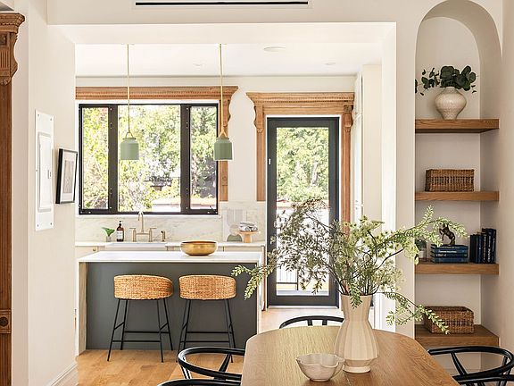 Upstairs, tranquil bedrooms offer leafy views and flexible use for guests, home office, or creative studio. The garden level hosts a bright two-bedroom, one-bath residence, spacious living room, sleek kitchen outfitted with stainless-steel appliances, a deep soaking tub, in-unit washer and dryer, and direct access to the backyard. Whether used as a stylish guest suite or as an income-generating rental, this space offers remarkable flexibility.