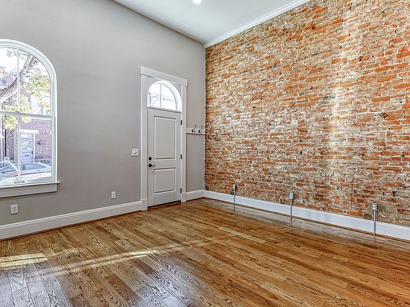 Exposed brick accent walls.