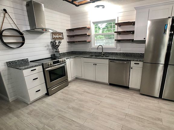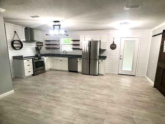 Beautiful, remodeled farmhouse style home. Huge fenced in backyard with a privacy block wall on rear property line. 4 Bedrooms, 2 1/2 Baths, 1450 Square feet on 0.37 Acre lot. NEW stainless steel kitchen appliances and custom made kitchen island. Pantry in kitchen. Granite countertops. Custom tile showers. Open AND split bedroom floor plan. NEW roof, flooring, paint, windows, hot water heater, cabinets! All updated plumbing and electrical. Covered back porch perfect for entertaining. Slocomb school zone. Call today to see this beautiful home! Will qualify for 100% USDA financing.