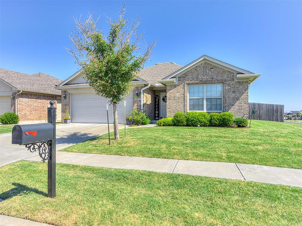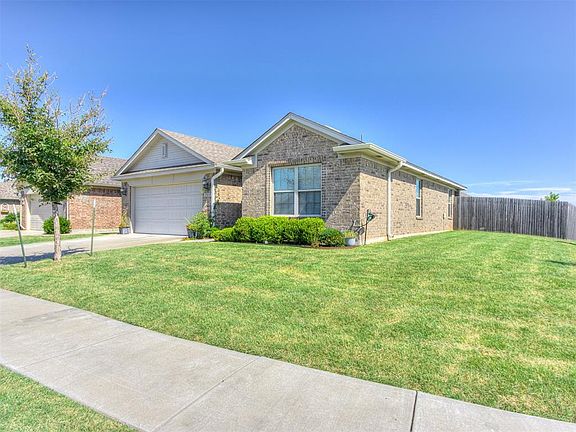 Beautiful one-owner home in a quiet neighborhood located just 10 minutes from OU campus! Fast access to I-35 for commuters, tons of shopping, and restaurants! Neighborhood amenities include walking trails, playground equipment, and a splash pad! Home is located on a larger corner lot with a privacy fence. Through the front door is the all-tile entryway with the guest bath and secondary bedrooms just to the right. Proceeding through the hall is the open-concept design kitchen, living, and dining areas. The kitchen features a stainless steel gas range stove below a gorgeous blue subway tile backsplash, microwave, dishwasher, and fridge. The kitchen island contains the sink and ample room for food prep or extra seating for dinner guests. The master bed and bath are located in the back of the house off the kitchen. Through the back door is the covered patio, perfect for sitting to sip your coffee! Listing agent is related to seller.