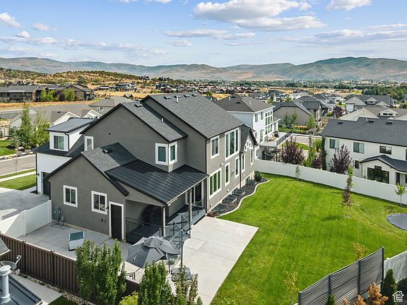 Sellers will consider Seller Financing with considerable down payment! Enjoy elevated living in this gorgeous, turn-key home on Heber Valley's East bench in the Stone Creek Residences! Experience open concept living at its finest, with vaulted ceilings, an abundance of natural light, oversized living spaces, extra tall door heights, and the perfect floor plan to maximize functionality and comfort. Timeless finishes make this home standout with hand-scraped luxury hardwood floors throughout the main level, a beautiful stone fireplace in the heart of the home, tasteful neutral elements and custom upgrades throughout. The spacious main floor master suite offers two separate vanities, a soaker tub, toilet room and walk-in closet. Surround yourself with the comforts of home in the gourmet kitchen complete with an oversized island, pantry, gas range, custom hood, double oven and additional cabinet space. The vaulted office offers an inviting space for productivity. Take advantage of the outdoor spaces with the alluring covered front porch and covered back patio that's ideal for outdoor cooking and relaxation. The newly finished basement is bright, open, and perfect for entertaining with its second full kitchen, open family/game room, glamorous jack and Jill bathroom, two large bedrooms and plenty of extra storage space. The permanent exterior lighting is awesome for holidays, seasonal and daily lighting customizations. This unique home boasts one of the largest lots in the neighborhood, complete with a fully fenced yard, RV parking and mountain views. Vivint security system and cameras included. Conveniently located within a few minutes of a variety of outdoor activities and Main Street. 15 minutes to Park City, 45 minutes to SLC Airport, 25 minutes to Orem. Information provided as a courtesy. Buyer to verify.