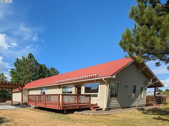 "This clean, neat, 2-bedroom 2-bath home has wood laminate and tile floors, vaulted ceilings, walk-in closets and a walk-in pantry.RV hook-up for visitors. Large oversized garage.Back and front yards are landscaped with a sprinkler system. Backyard has a wooden deck with a roll-over awning. There is a wood pergola in the back, as well. The front porch, made with pavers, is covered.From the kitchen there are great views of the mountains. The approximately 1/3 acre lot is wooden fenced and gated. A seasonal irrigation ditch runs alongside the road in front of the property.City water, sanitary sewer and DSL. Pacific Power provides electricity, but the house has been wired for an emergency generator.