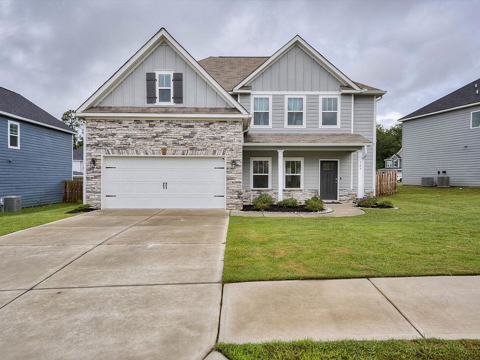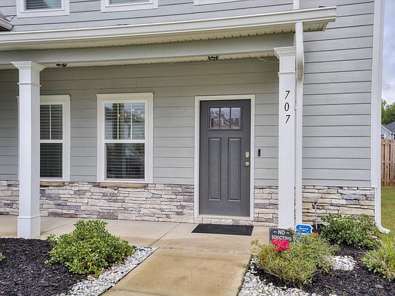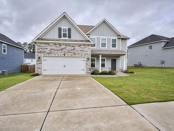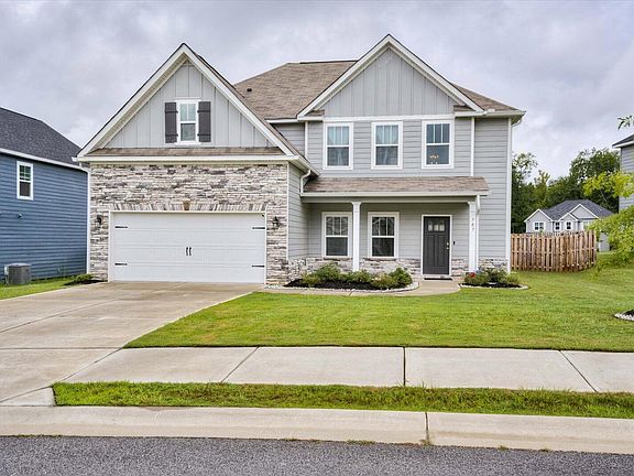 Lovely 4BR | 3BA home in sought after Canterbury Farms! This home is in pristine condition and offers an open concept floor plan. The front porch overlooks the level front lawn and quaint neighborhood. As you step inside this home you will enter the foyer with beautiful wood look flooring that runs throughout the first level. The formal dining room will be to your left with detailed trim work on the walls and ceiling along with a chandelier and large front window. Straight ahead is the great room with coffered ceilings, a beautiful fireplace, shiplap accent wall and abundant natural light. Enjoy cooking and entertaining in the spacious kitchen. The kitchen features a large island that overlooks the great room, fresh white cabinets, stainless steel appliances, pantry and attached breakfast room. One of the four bedrooms is located on the main level with a full bathroom. Upstairs you will find the oversized primary bedroom. This is an oasis in your home! High ceilings, an attached sitting room with a fireplace and private en suite bathroom with a garden tub, tile shower, dual vanity and large walk in closet. Two additional bedrooms and third bathroom complete the second level. The backyard has a great size lawn with a privacy fence and covered patio area. This home is the complete package! Located in a neighborhood that offers many amenities along with being close to shopping, dining and interstate access. You don't want to miss this one!