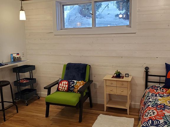 This Garden Apartment is behind Hoops Fish Market (don't worry, no fish is processed here). All utilities, even WiFi are included in the monthly price. It's a two room studio with a kitchen and a living/bedroom, plus closet. The unit is accessed through a hallway that has one other unit, the Bayfield Commons laundry room, and a shared bathroom (with one other person). The unit has insulated wood floors, a whitewashed wood ceiling, accent mood lighting, and plenty of kitchen cupboards. The common bathroom is tiled, clean and has a tub. The laundry room is only used until 8pm. This garden apartment comes with 1 parking stall. The Bart Bus stops in front of the building and this unit is only blocks away from a pocket park, across the street from the Brownstone Trail, and a 10 minute walk to downtown Bayfield. We encourage sustainable living at Bayfield Commons and building community with the other tenants in this building and the blue duplex next door. There is a laundry line, shared outdoor furniture, and shared garden tools too. Year leases only unless you are willing to pay $1000/mo June1-Sept 15. Please contact Sonya Newenhouse for an application at (608) 22zero-8zero29. The actual address of this unit is 709 Unit B, but I use 707 as that is the street address. Amenities include: * Heat and Electricity included * A Parking spot off street * Water and Sewer utilities * Waste and Recycling pick up * Free Laundry on Site * Easy to clean hardwood and tile floors throughout * Furnishings all that you can view in the pictures * Responsive landlord -- Contact Sonya Newenhouse for application at (6zero8) 22zero-8zero29