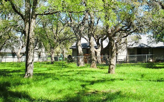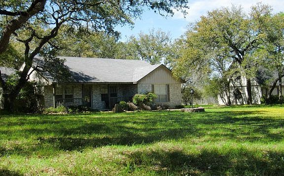 Country living with hundreds of beautiful mature trees. 5 Beautiful acres in Spring Branch with a lovely 3 bedroom, 2 bath home. 10' ceilings, nice open floorplan, large bedrooms, and a jacuzzi tub. Detached large 3 car garage with additional upstairs work/play space, PLUS a large workshop, and another storage bldg. The property is double fenced & manicured to perfection.