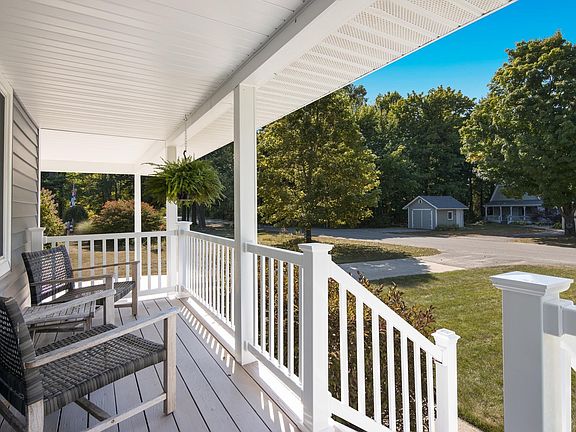 Charming Home on the west side of the village of Elk Rapids walking distance to Beaches, The Art Park, Downtown with its shops and restaurants. This lovely home features a low maintenance exterior with convenient covered parking. The main level has an open floor plan. The kitchen has newer stainless steel appliances, granite counter tops and is open to the dining area with easy access to the back composite deck ideal for bbq'ing and al fresco dining. Spacious living room opens up to the covered front porch perfect for sitting any enjoying this quiet location. Small town living is at its very best from a covered front porch! The primary suite is upstairs with its own private bath and double closets, overlooking the backyard. Two additional bedrooms share an additional bathroom. All bathrooms are fresh and bright with granite counters. Lower level is a great space for movie nights or gaming it is very cozy. Fourth bedroom is non-conforming. Plus there is a large storage room with shelving. Large backyard with firepit just bring your s'mores! Alley entrance to pole barn is a 2 car garage with opener. Alley makes it easy to store your boat in the yard for the summer season. This lovely home is ready for its new family!