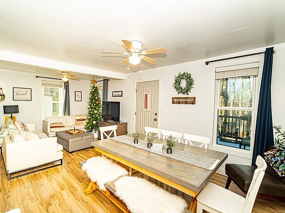 Completely remodeled and restored home in a convenient Wakefield location! Updates include new flooring, paint, appliances, fixtures, furnace, and water heater. The nicely updated kitchen offers ample counter space and opens to a bright living/dining area. A remodeled full bath and a spacious storage/closet area sit just off the living room. The upper level features a large sleeping loft with multiple areas divided by partial walls, providing flexible sleeping or guest space. The basement includes laundry hookups and additional storage. Enjoy the maintenance-free metal roof and the expansive 24x12 deck overlooking peaceful woods. A turnkey, low-maintenance home ready to enjoy!