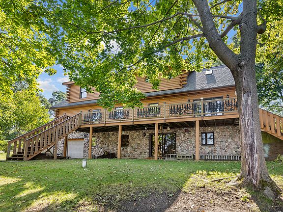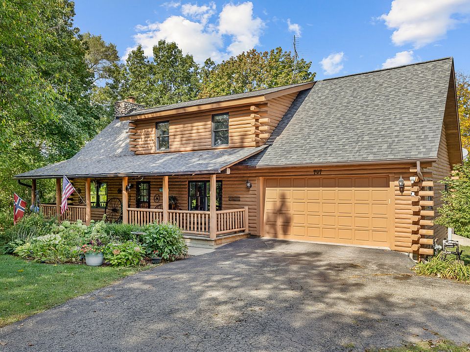 Escape to your own private retreat in this stunning waterfront log home! With Serenity and peace around you, yet the convenience of being close to downtown. This one-of-a-kind property perfectly blends rustic charm with modern comfort without the riverfront taxes. Step inside and feel instantly at home as natural wood tones, vaulted ceilings, and the glow of the two-ton wood-burning fireplace (with gas starter) create a warm and inviting atmosphere. The main-level primary suite offers easy living, while the second level provides flexible space that can serve as a guest suite, in-law arrangement, or private retreat. Every detail has been thoughtfully maintained-from the 8-year-old roof to the furnace serviced yearly with a brand-new motor, giving peace of mind along with beauty. Outside, enjoy the tranquil waterfront views and peaceful surroundings that make this home truly special. The property also includes two garages: a 2.5-car garage that's extra wide for toolboxes, worktables, and storage, plus a walk-in second garage with a one-car door that extends two cars deep, ideal for hobbyists, collectors, or extra storage needs. Whether you're cozying up by the fire, hosting loved ones, or simply soaking in the natural beauty around you, this home offers a warmth and character you won't find anywhere else.