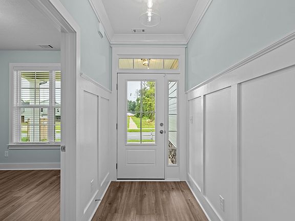 Available for late February occupancy! Brand new 3 bedroom, 2.5 bath ranch with 2-car garage and fenced backyard, located in Misty Meadows! Covered front porch leads to foyer with sidelight window at front door and french door access to flex room. Waterproof Evacore click flooring throughout living space including foyer, living room, dining room and kitchen. Foyer opens to open concept living area, with the kitchen overlooking the living and dining space, perfect for entertaining. Living room has trey ceiling, ceiling fan and gas fireplace. Adjacent dining area has trey ceiling, decorative lighting, access to backyard. Well equipped kitchen has island with overhang for barstools. Kitchen also has granite counters, stainless appliances, subway-tile backsplash, farmhouse apron sink and double door pantry. Hallway off kitchen leads to laundry room, garage, mud room, half bath and linen closet. Mud room off garage has coat pegs and shoe bench, also security system panel that can be activated by the tenant. Conveniently located half bath with stone counter. Garage has sprinkler system control for both front and back yard. Laundry room with washer/dryer hookups, cupboard and hanging shelf. Primary bedroom with trey ceiling, fan, enormous walk-in closet with shoe rack and en suite bath with dual sink vanity, large soaker tub and separate walk in shower. Spacious 2nd and 3rd bedrooms upstairs with double door closets and double racks for additional storage capacity. Backyard has covered patio. Completely fenced backyard! #goodtoask