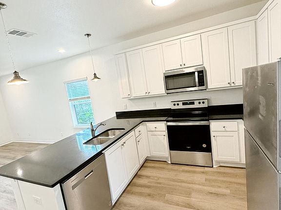 -Modern Amenities: Stainless steel appliances, custom cabinetry, and granite countertops.