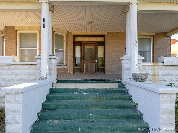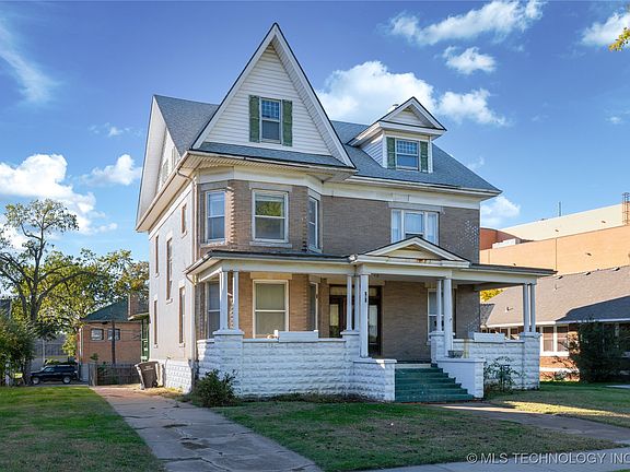 Discover the charm of yesteryear nestled in Bartlesville’s historical district. This spacious home has 4 bedrooms, 1.5 baths, and original architectural details that have stood the test of time — including wood craftsmanship, detailed molding, and gleaming hardwood floors. Three fireplaces and two living areas provide cozy spaces for gathering, with a spacious dining room add light and elegance. With 14’ ceilings and a large attic offering abundant storage, this home blends history and opportunity. unwind on the inviting front porch with a view of the city and take advantage of the backyard’s extra parking. With its solid craftsmanship and timeless appeal, this home is ready for a new owner to restore its former glory. Sold As Is