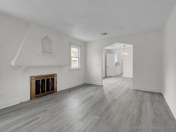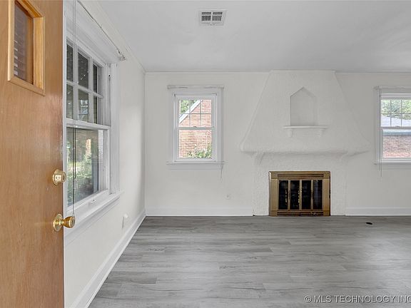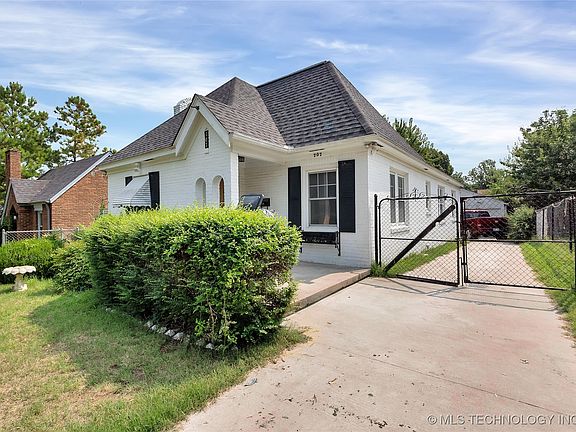 Updated bungalow near University of Tulsa and Turner Park with sharp white painted brick & black shutters. New light color composite wood flooring and off-white neutral paint interior. Built-in 1928 with a lot of character, 3 bedrooms, & one full bath, separate garage with laundry connections.