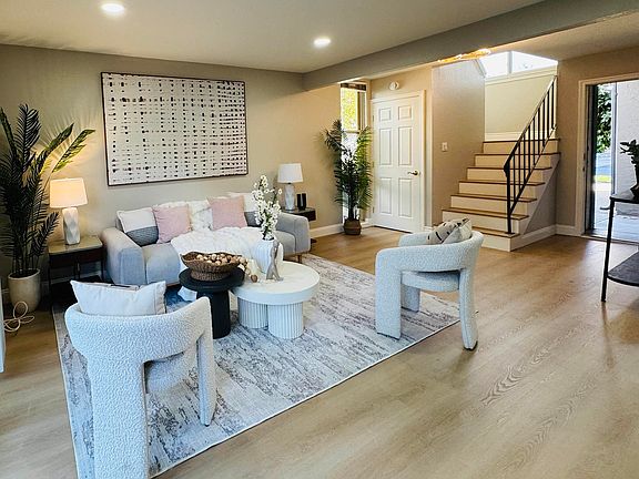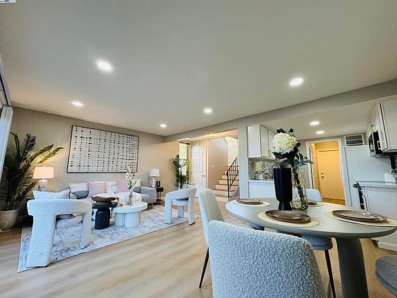 Beautifully upgraded townhouse offers modern comfort and timeless style near downtown Livermore. Fully renovated recently, the home features new luxury vinyl plank flooring throughout, fresh interior paint on walls, ceilings, and doors, and a completely remodeled kitchen designed for both functionality and beauty. The kitchen showcases a new quartz countertop, farmer’s sink with new faucet, modern mosaic backsplash, refinished cabinets with golden pulls, and new stainless steel gas range/oven and a three-door refrigerator. New lighting features including 8 new recess lights downstairs and 5 modern LED lights in each bedroom, stairs and hallway. Bathrooms were updated with new vanity lights, new LED mirrors and toilets and exhaust fan. Easy-to-maintain backyard, surrounded by mature pine trees and featuring a jacuzzi tub—a perfect spot to unwind after a long day. A one-car garage with built in cabinets and racks, convenient laundry setup, and proximity to everything Livermore has to offer. Excellent commute access to I-580, close to downtown Livermore, award-winning wineries, and San Francisco Premium Outlets. This move-in ready home truly combines style, comfort, and convenience—don’t miss the chance to make it yours!