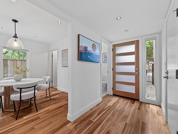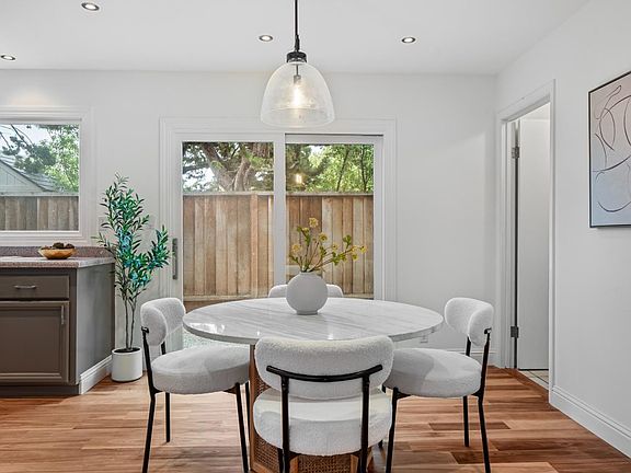 The open layout connects the sunroom, deck, and interior spaces with ease, while durable hard floors run throughout. The gourmet kitchen features sleek cabinetry, stainless steel appliances, a center island, and a sunny breakfast nook.