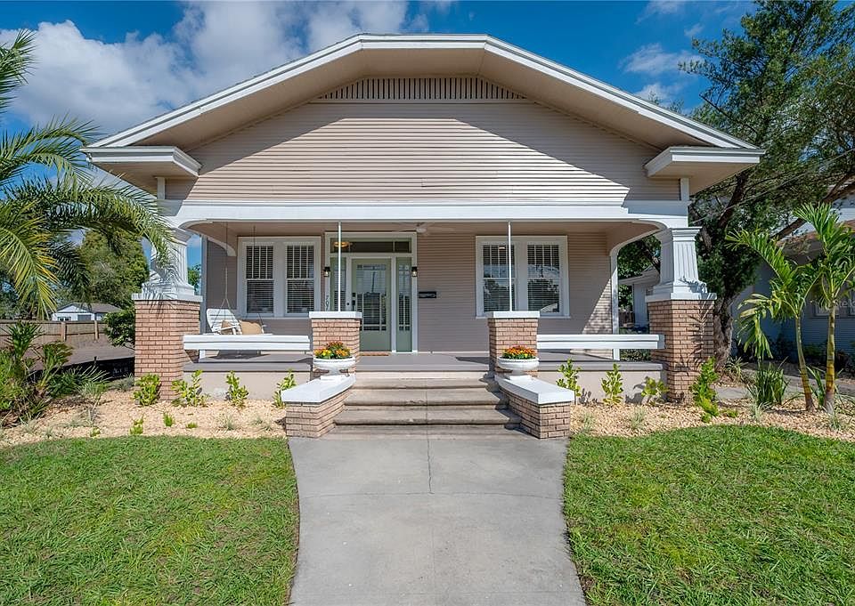Charming 1920s Riverside Heights Bungalow! Step into timeless charm and modern comfort in this beautifully maintained 1920s bungalow, nestled in the heart of highly sought-after Riverside Heights. This character-filled home showcases original wood floors, high ceilings, and classic details like original doors and a cozy wood-burning fireplace—all blending seamlessly with modern updates. The renovated kitchen and bathroom add contemporary style and convenience, while updated electrical and plumbing systems provide peace of mind. Enjoy outdoor living at its best with an inviting covered front porch, a spacious back deck, a paver patio with a tranquil fountain, and a detached one-car garage. The yard features new landscaping for great curb appeal, and the interior has been freshly painted throughout, creating a bright and welcoming atmosphere. Perfectly located in X flood zone (Flood Insurance is not required) and just minutes from Armature Works, the expanding Riverwalk, Downtown Tampa, and Raymond James Stadium—this home offers the ideal combination of historic character, modern updates, and unbeatable convenience.