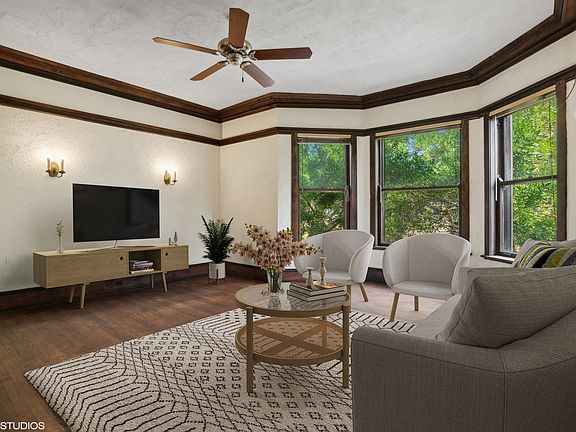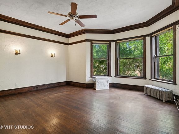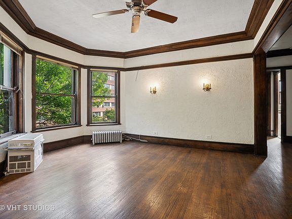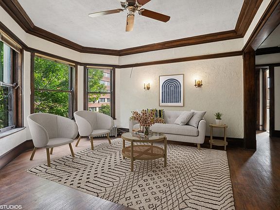 Enjoy all the beautiful vintage details in this Buena Park 2 bed/1 bath penthouse in one of the historic Pattington buildings on a quiet one-way tree-lined street. Meticulous original wood work throughout the unit frames the walls, windows, doorways, brilliant tray ceilings and crown molding. Elegant foyer welcomes you with high ceilings into the expansive living room with large bay window. The spacious kitchen features two sinks, an abundance of countertop space and storage, in unit laundry and open to a large dining/breakfast room. This 1300sqft unit is further enhanced by an updated bathroom in between the two bedrooms. The primary features stunning coffered ceilings. The complex includes a private park, playground and massive patio that's perfect for entertaining and grilling as well as a dog park. Garage parking can be rented onsite. Steps to lake, bike path, transportation.