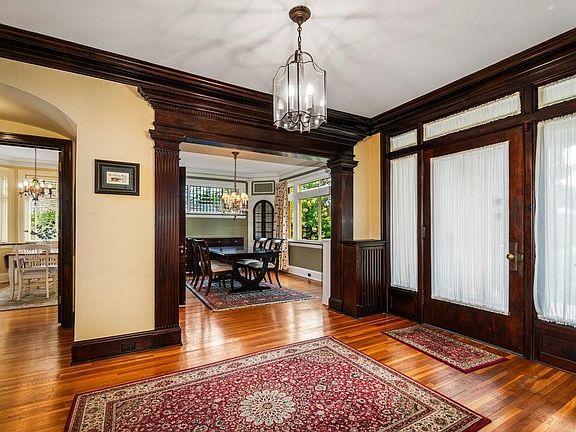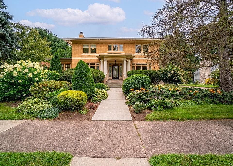 Discover a rare opportunity to own a piece of history with the Wis. Brynelson Mansion, a meticulously restored and preserved 1922 masterpiece. Built by the owner of the Honki Dori Shoe Factory, this home is widely considered one of the most well-built residences in the city. Step onto the glazed tile porch, where ten original old-growth pine columns stand as sentinels to the past. Through the beveled 3/8-inch glass door and its sidelights, a grand foyer awaits, showcasing the home's original lighting fixtures, intricate crown molding, hardwood floors, and stunning French doors. The original grandeur has been thoughtfully maintained while receiving a comprehensive modernization over a 30-year period, including electrical and new PEX and copper plumbing. The modern kitchen features in-floor heating. The lower level has a wine cellar, a weight room with a rubber-rolled floor, and a sauna. The outdoor space is just as captivating, with hundreds of lush perennials, shrubs, and mature trees.