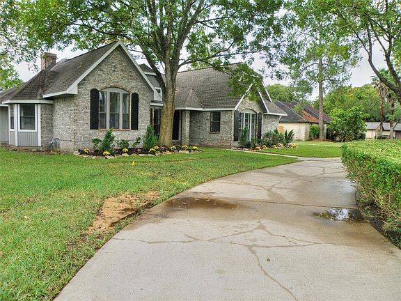 Remodeled home in Friendswood! DID NOT FLOOD DURING HARVEY! This home has undergone extensive renovations. This home offers- recent wood floors in dining-living-kitchen-gameroom, carpet in bedrooms, tile in baths and utility, granite in kitchen and bathrooms, Kitchen with a 9 ft long island -stainless steel appliances-5 burner Whirlpool gas cook top/convection oven, living area with a brick fireplace with gas logs and a wood beam ceiling, spacious game room that could be a 4th bedroom (if needed), master bath with stand alone soaker tub-large walk-in shower, barn door entry to game room, ceiling fans in living, game room and master, 3 car oversized garage with a 7x23 storage area off the garage, gated entry to garage area, plus so much more...