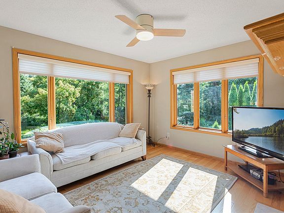 Welcome to this beautifully maintained rambler, where stunning views and exceptional outdoor living spaces await! Nestled with a picturesque backyard, this home is designed for both relaxation and entertaining. Enjoy hardwood and tile flooring throughout, complemented by vaulted ceilings that enhance the home's open and airy feel. The main floor laundry offers added convenience, while built - in features and abundant storage provide practicality and organization. The two-sided fireplace serves as a cozy centerpiece, and the four-season porch allows for year-round enjoyment of the outdoors. Experience the perfect blend of comfort and nature with a private backyard overlooking Clearwater Creek. Additionally, an extra 12x16 detached storage building offers ample space beyond the 3-car garage. Conveniently located just minutes from 35E, providing easy access to local amenities and transportation.
