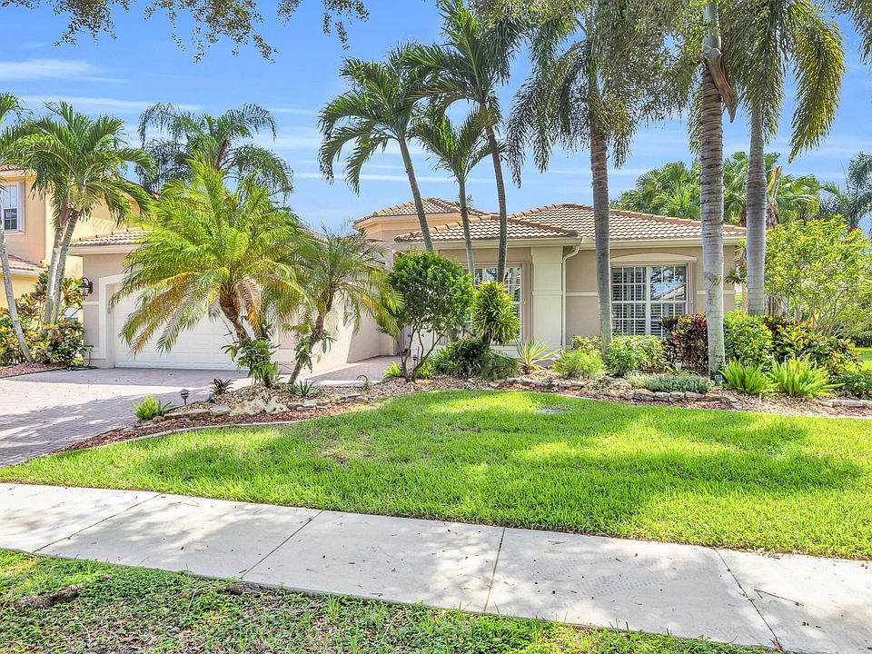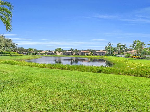 This beautifully appointed Madrid model is nestled in the prestigious Valencia Pointe community. This immaculate home offers the perfect blend of comfort, style, and breathtaking views, featuring a serene private lakefront setting that provides peace and tranquility right in your backyard. Step inside to find spacious open-concept living areas, high ceilings, and an abundance of natural light that enhance the home's elegant design. The gourmet kitchen boasts Bianco Superiore Quartzite kitchen countertops with a waterfall edge, wood cabinetry, stainless steel appliances, a propane gas cook top and a cozy breakfast nook with picture-perfect views of the lake. Upgrade highlights include: full house generator, custom glass entry doors, 2 foot garage extension, expanded driveway, walkway and patio pavers, built-in wall units, electronic ''phantom'' patio screen, 2019 Carrier AC units, gutters, accordion storm shutters, propane gas outdoor grill, 6 month old water heater, brand new pool pump & motor, new mosquito sprayer motor, new garage door mechanicals: motor, wheels, etc... and so much more. Half bath has been converted to a closet; plumbing hook-ups remain to convert back if desired. Walls have been photo shopped as they have been patched/sanded/prepped for paint. The expansive primary suite is a true retreat, complete with walk-in closets, a luxurious en-suite bath with dual vanities and a separate shower. Additional bedrooms offer flexibility for guests, a home office or a hobby room. Step outside to your expansive patio, where you can enjoy peaceful mornings or relaxing evenings overlooking the sparkling lake and lush landscaping or enjoy the separate sitting area just off the waterfall and mini pond...your private sanctuary awaits you on this incredible lot with no one on your right side. Located in the sought-after 55+ Valencia Pointe community, residents enjoy access to a resort-style clubhouse, café, fitness center, tennis and pickleball courts, swimming pools, and a full calendar of social activities.