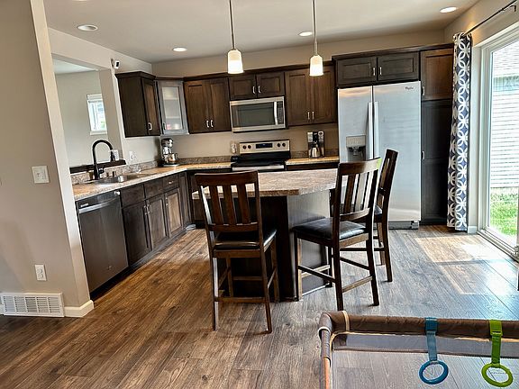This beautiful 3 bedroom, 3.5 bath is located on the outskirts of Madison. The home has an open concept with a large island and breakfast bar. The kitchen opens to the patio for easy grilling and outdoor dining. The large master bedroom easily fits a king bedroom set and has a spacious master bathroom with a 6' shower. With two extra bedrooms, this home would be perfect for a family or an individual looking for extra space. A second bathroom near the bedrooms has an extra deep tub and lots of counter space. The finished basement with wet bar is an excellent upgrade for entertainment, extra storage, and a cozy place to spend your evenings! The home has smart lighting and other smart home additions. The small lot allows for easy maintenance, but the proximity to Door Creek Park allows access to beautiful, paved walking views, a new park pavilion, tennis courts, and children's play equipment. Close to Cottage Grove and Sun Prairie, shopping, dining and much more! Pets are negotiable for an additional fee. 2 pets total. This is a non-smoking property. Utilities are tenant responsibility. Parking included. Tenant responsible for lawn care and snow removal, lawn mower provided. Rental insurance is required.