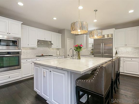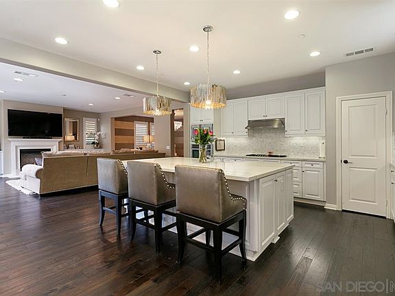 Gorgeous Craftsman Bungalow in sought after La Costa Oaks. This Model perfect home boast an open floor plan where you will find a highly upgraded DREAM kitchen with quartz counters, Carrera Marble backsplash, built-in appliances, & a spacious casual dining nook overlooking the stunning backyard. Adjacent to the kitchen, the family room features a gorgeous fireplace flanked by built-in cabinets and stunning solid hardwood floors. Amazing community amenities: Pool/Spa/Exercise Room/Clubhouse, etc