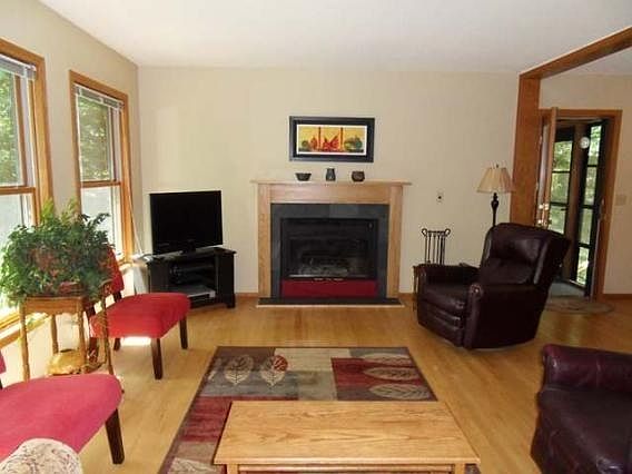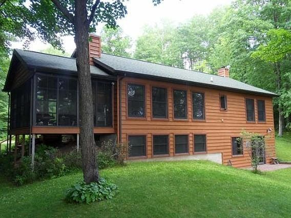 This three bedroom three bath cedar sided lake home features three hundred plus feet of frontage on 42 acre private Samway Lake, master suite, open concept living/dining area, two fireplaces, lower level walkout family room, heated insulated workshop, garden beds, firepit, 2 car attached garage, private lot, 2 piers, and a lakeside three season porch. This is a beautiful private property with hardwood flooring, ceramic, tile, double pantry, etc.