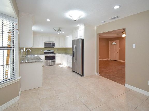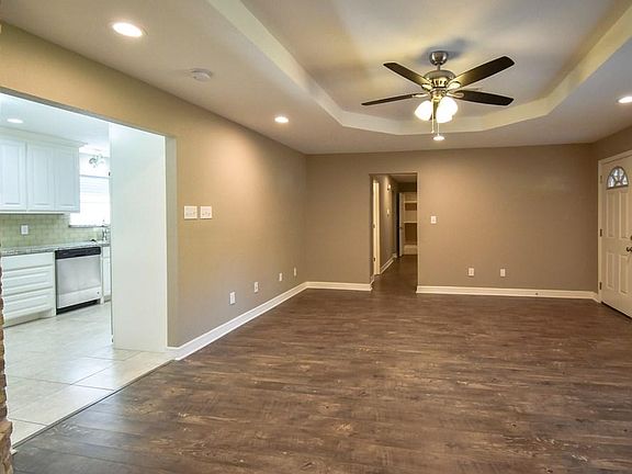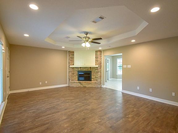 Beautiful totally renovated 4/3/2 family home on .45 acre on quiet cul-de-sac in HJISD!! Gorgeous wide plank laminate floors throughout w/ carpet in bedrooms. Large 20.6 x 15.6 living area w/corner fireplace.Gorgeous kitchen w/granite countertops,stainless appliances w/refrigerator & breakfast area. Huge laundry w/plenty of room for a study area/mud room. Awesome private master suite w/its own den, huge walk-in closet,master bath w/separate tub & shower,double sinks. 3 more spacious bedrooms,3 shelved hall closets.Beautiful tree shaded backyard w/ 29 x 14 covered patio & a brand new privacy fence.(woods behind the fence line) Brand New Arch 30yr roof 3/19 w/windstorm certificate and new windows. Huge driveway great for plenty of parking parties! Located in Zone "X" HARDIN-JEFFERSON SCHOOL DISTRICT. OWN me for just under $1,800. a month!!
