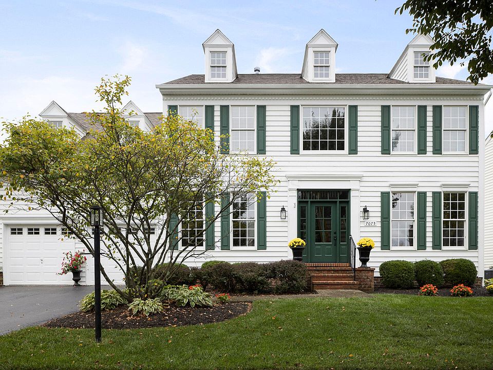 Beautiful 4 bedroom, 2.5 bath home in New Albany Links with 3,800+ sq ft of living space. A two-story foyer opens to a private home office, formal living room, and dining room with direct access to the kitchen. The kitchen offers stainless steel appliances, wood floors, a center island with bar seating, and an eating space with skylight, flowing into the family room with vaulted ceiling, loft overlook, and woodburning fireplace. A convenient first floor laundry and half bath complete the main level. Upstairs, the primary suite features a renovated bath with dual vanity, deluxe walk in shower, and spacious walk in closet. Three additional bedrooms, an updated full bath, and spacious loft complete the second floor. The finished lower level includes a home gym, media/rec space, and storage. Enjoy a large patio, generous backyard overlooking the golf course and pond, and a 2-car garage. Updates include new roof, whole-house paint, and kitchen remodel with back door (2020); new back patio, front entry and garage doors, renovated primary bath and closet (2024); and updated second-floor bath (2025).