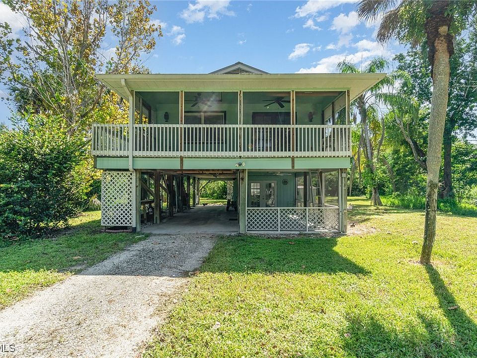 Discover a hidden gem in one of Fort Myers’ most desirable areas! Stilt Home, 2 bedroom, 2 bath, vinyl floors throughout, metal roof, and washer/dryer hookup in the residence. Also includes outdoor shower and firepit down by the creek. This unique offering includes four parcels (each with individual STRAP numbers) combined to create approximately 5.25 acres of prime real estate. This specific property is 0.49 acres of the total +/-5.25 acres.