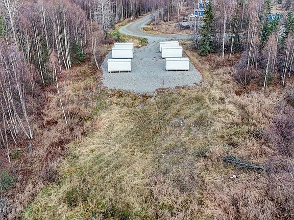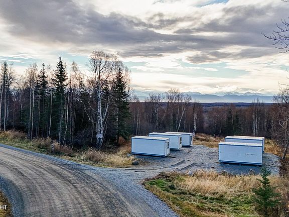 Beautiful 4.51-acre lot in a private setting with a gravel pad, well, and mountain views! Property includes six insulated 8'x19' connex units, each spaced for one parked vehicle--ideal for storage, business use, or future development. West property line borders State of Alaska land for added privacy and access to endless recreation.The on-site well is 248 feet deep and produces approximately 10 gallons per minute. Enjoy year-round maintained road access, unzoned flexibility, and a peaceful, sun-filled setting just minutes from Wasilla. Endless potential! Key Features: 4.51 acres in Sunset Hill Estates Six insulated 8'x19' connex units included Gravel pad with parking between each unit 248' deep well producing approx. 10 GPM Borders State of Alaska land Unzoned (MSB) for flexible use Year-round maintained road access
