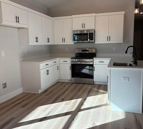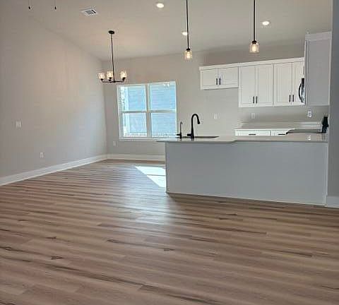 The open concept design seamlessly connects the living room, dining area and kitchen, creating a versatile & inviting atmosphere for gatherings.