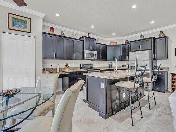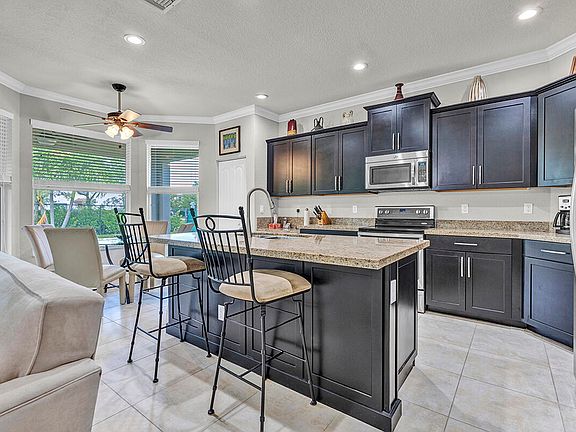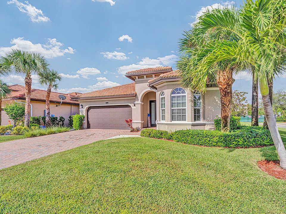 Welcome to this charming large corner lot with 3 bed, 2 bath, 2 car garage home located in the highly sought after and excellently managed community of Vista Lago directly across the street from community pool. Built in 2016, this home features a timeless Mediterranean style design with high ceilings, crown molding, and colonial baseboards that add an elegant touch. The open floor plan creates a spacious atmosphere, perfect for both relaxation and entertaining. Enjoy peace of mind with impact windows and Square-D surge protection for all appliances. Rarely lived in due to seasonal ownership. This central location offers easy access to I-95, the Turnpike, top rated restaurants, PBI Airport, and pristine beaches. Everything you need is just a short drive away! Make this beautiful home your own and experience comfort, convenience, and style in one of the most desirable neighborhoods