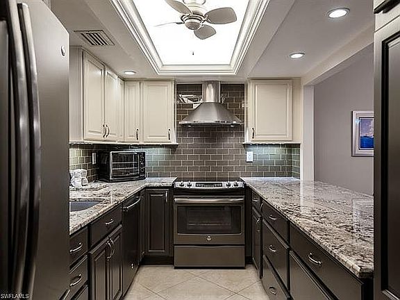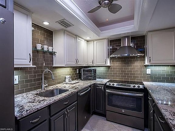 A fabulous kitchen renovation sets the tone for this exceptional ground level Quail Run condo. Rarely available, this wide floor plan with a large walk-out lanai is a fantastic opportunity. Wood plank laminate flooring throughout the living areas creates a perfect backdrop to the wall of sliding glass doors that line the western side of the condo. Newly updated Master and Guest bedrooms and bathrooms with beautiful tile and luxury vinyl flooring. King bed in Master, Queen in Guest. Tropical landscaping provides a lovely view while abundant sunlight provides plentiful natural light throughout the living room, dining room, and kitchen. Newer appliances and custom cabinetry are highlighted by a glass subway tile backsplash and beautiful Granite countertops. From the lanai, enjoy a nice view of the lake and well-manicured lawn. The condo is spacious and features tasteful décor. The amenities at Quail Run include a lakefront walking path, lovely pool and community room, shuffleboard, BBQ, and access to the riverfront marina. Ideally located just off McGregor Blvd, it has a quiet, peaceful setting but is close to a great variety of shopping, dining, and the beaches.