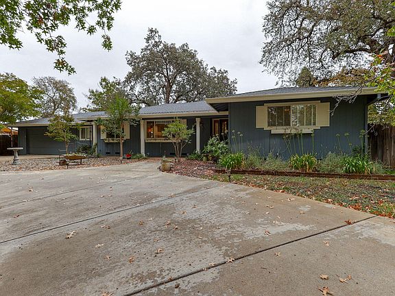 Home Sweet Home charmer on a half acre lot with a pool. Enjoy the backyard with patios, veggie garden, three outbuildings and trellis'. RV parking and circular driveway with lots of off street parking and an attached two car garage. Granite counter tops in kitchen and both bathrooms. Master bedroom and bedroom two feature doors that lead to the garden. Kitchen has a five burner range/oven, built in microwave and dishwasher. Enjoy the gas fireplace in the great room. The roof was replaced two years ago. Wood floors throughout the house.