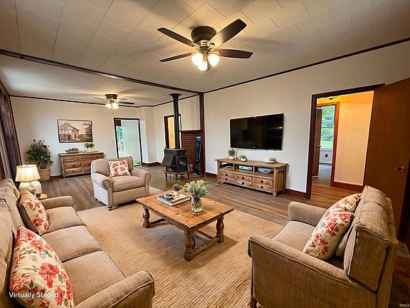 Welcome to 7077 W 450 S in Williamsport! This 2-bedroom, 1-bathroom bungalow offers comfortable living with an eat-in kitchen and a nice deck overlooking the backyard. The large primary bedroom could easily be divided into two bedrooms to create a 3-bedroom home and has been virtually staged to show this potential. All appliances and electrical are newer, along with a brand new roof, adding peace of mind for the next owner. The home also features a high-efficiency (90%) furnace that’s just one year old, and a 2-car detached garage provides plenty of storage and parking. Call your favorite realtor to schedule a showing and make this property yours today!