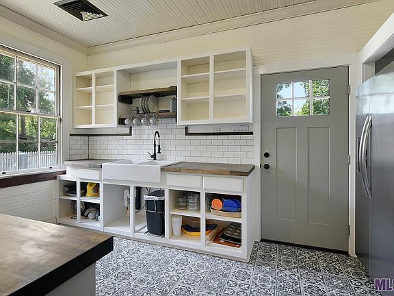 Sitting on 1.1 acres, this farm style home is ready to move you! Beautiful real wood floors throughout the common areas and master bedroom, chopping block countertops, farm house kitchen sink, and more. This split floor plan includes a formal dining room and large bedrooms. Newly poured back patio prefect for entertaining and enjoying the country feel. Two car carport with large shed connected. This home did NOT FLOOD! Washer & dryer to remain, AC is less than 5 years old, water heater is less than 2 years old.