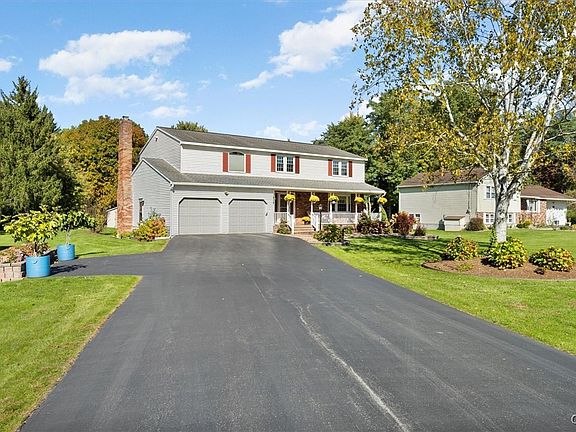 Beautiful 4-bedroom 2.5 bath move-in ready colonial located in East Syracuse Minoa school district sits on a generous .78-acre lot. Numerous updates within the past two years, move right in and skip the remodeling phase. Upon arrival, you are completely enamored by the meticulously well-kept landscaping and impressive curb appeal. Stunning front porch. Hardwood floors in the living room, dining room and family room. Granite countertop in the kitchen with plenty of cabinet space. Eat-in kitchen offers a view of your backyard. Dining room for more formal eating arrangements. Sliding glass door in kitchen leads to the new deck built with trex materials and your big backyard great for entertaining and activities. Oversized bedrooms upstairs. Two full bathrooms, one completely remodeled within the past two years and looks like it should be featured in a magazine. All-in-one washer and dryer upstairs. Primary suite has a walk-in closet and large full bathroom. House was built with 2x6 construction, Plywood ¾” tung and groove on all interior floor, exterior walls, and roof. New epoxy floor in garage. Partially finished basement adds even more space to gather. Schedule a tour today!