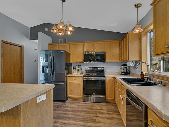 Welcome to this beautiful Rice home that blends country charm with modern convenience! Featuring 3 bedrooms, 2 bathrooms, and an insulated/heated 3-stall garage, this property is designed for both comfort and function. Step inside the spacious entryway and head upstairs to find an open-concept main level with vaulted ceilings, updated vinyl flooring (2021), and a bright kitchen complete with stainless steel appliances, a new dishwasher (2024), a center island, and a patio door leading to the deck—perfect for enjoying peaceful views of your private backyard. Two large bedrooms with walk-in closets and a full bath complete the upper level. The lower level offers even more living space with a generous family room, a full bath with jetted tub, and a third bedroom featuring an oversized walk-in closet (8x11!). Outside, you’ll appreciate the concrete driveway with extended parking, a 10x16 shed for extra storage, and recent updates including a new A/C unit (2024). This move-in ready home truly has it all—space, updates, and a setting that gives you the best of both country living and city amenities.