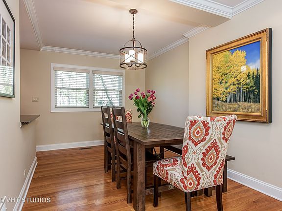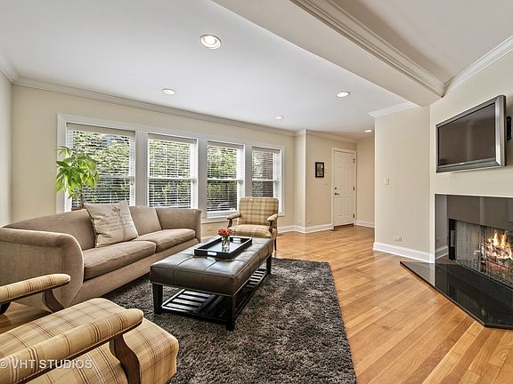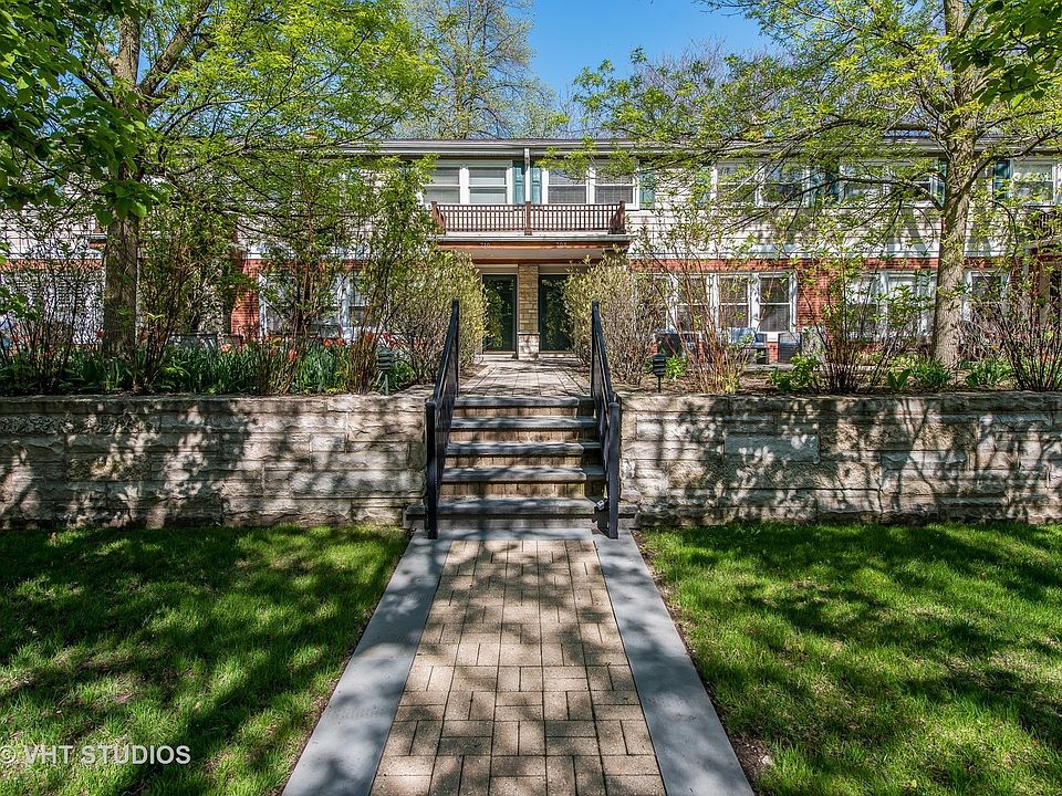 Immaculate, completely renovated and freshly painted sunny 4 bedroom, 2.1 bath townhome in downtown Wilmette, 1 block from Metra, shops & restaurants. Kitchen features cherry cabinets, quartz counter tops, & SS appliances, open dining room. Spacious living room with fireplace. Hardwood floors & crown molding throughout. Finished lower level with recreation room, full bath and 4th bedroom. Spacious front yard w/patio, plus private rear patio & garden. Nothing left to do but move in & enjoy. Dual zone HVAC. Such a fabulous location! 2 outdoor parking spaces and garage parking can be rented directly across the street if desired.