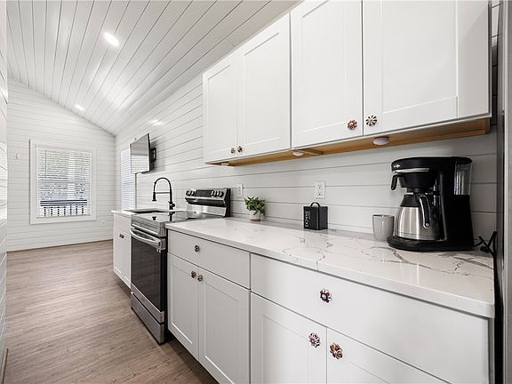 Elegant granite countertopsWater softener systemStylish shiplap accents